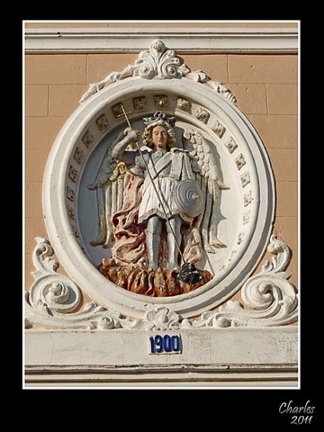 San Miguel Arcángel venciendo al demonio, imagen del relieve en la fachada del Real Monasterio de San Miguel de Llíria (Valencia-España), fundado por Jaime II «el Justo» el 27 de abril de 1326 y de gran devoción.