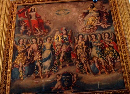 San Miguel Arcángel y los arcángeles de Palermo ante la Santísima Trinidad, ubicado en el Templo del exconvento de los Siete Príncipes de Religiosas Concepcionistas Cacicas Indias de Oaxaca, México.