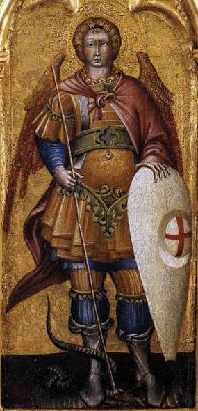 Miguel Arcángel venciendo al dragónSan Miguel Arcángel venciendo al dragón, ubicado en la Pinacoteca Vaticana de la ciudad-estado del Vaticano.