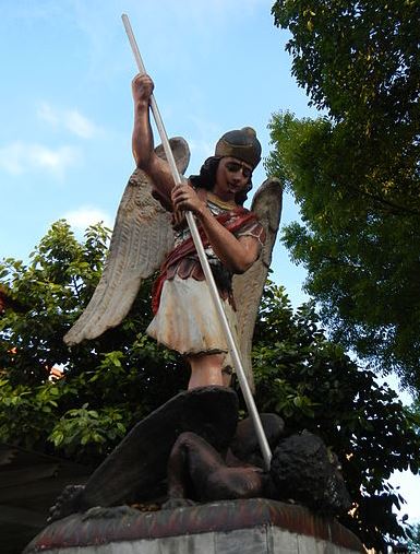 Miguel Arcángel derrotando al Príncipe de las tinieblas, ubicada en el Santuario Diocesano de Nuestra Señora de la Parroquia Abadonada.