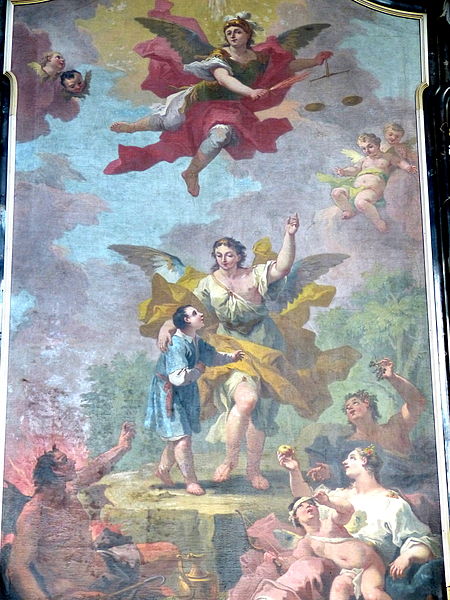 Representación de San Miguel Arcángel en la Iglesia del monasterio de Engelszell (1754-64), Cuadro expuesto en el altar de Bartolomeo Altomonte, ubicada en Engelhartszell, Austria.