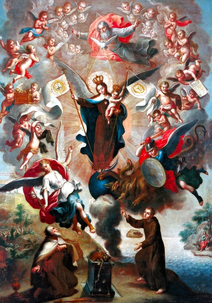 Madre del Carmen con tu insignia de amor, tu santo escapulario siempre nos proteges de todo mal y temor. Virgen del Carmen que tu bendita intercesión nos ayude a llegar a Dios a ti encomendamos nuestro ser y en la hora de la muerte acompáñanos a llegar a la presencia del Rey. Virgen del Carmen Estrella del mar eres por siempre la reina del cielo. Madre del amor verdadero Virgen del monte Carmelo; Los Ángeles y Arcángeles ante ti se inclinan pues saben que eres la reina del cielo la madre de Dios y de la humanidad consuelo.
