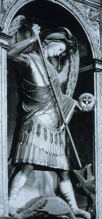 Representación iconográfica de San Miguel Arcángel en la lucha contra el santanas hecho dragón